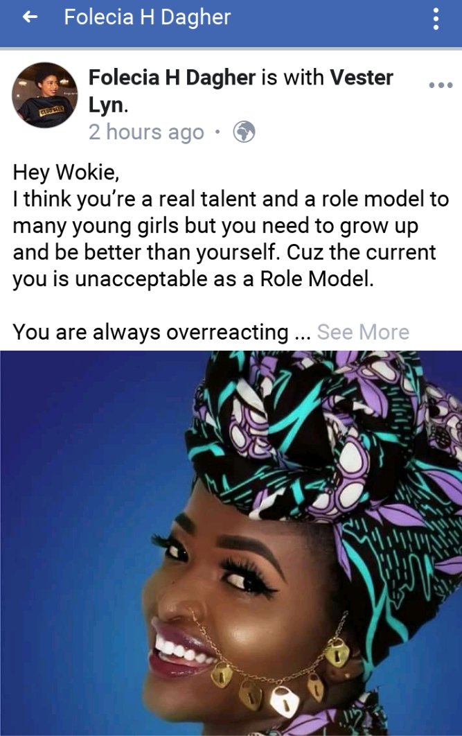 The super uprising model Folecia H Dagher Posted on her facebook page an hours ago addressing the public What went on between she and the goddess of Liberia Wokie DOLO