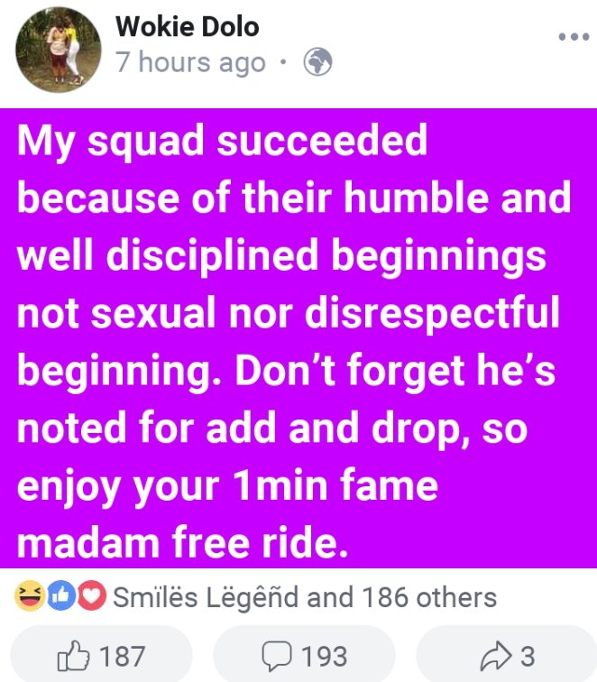 She na jokes seh 😂 see her status in the screen shot 😂